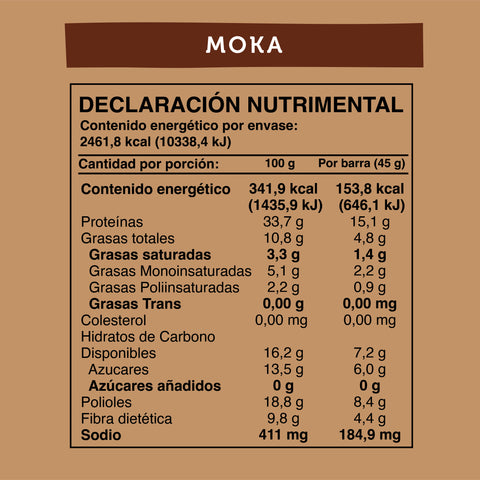 Para los que buscan algo diferente. Nuestra barra Chocolate Moka mezcla el cacao y el café en una experiencia que sacude tus sentidos. Con 15g de proteína, es la forma más deliciosa de reinventar tus snacks diarios y mantenerte siempre activo, sin azúcar añadida.